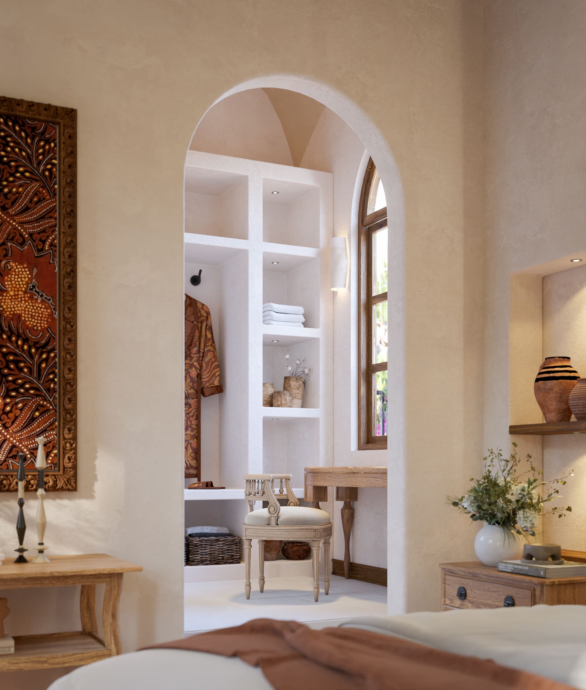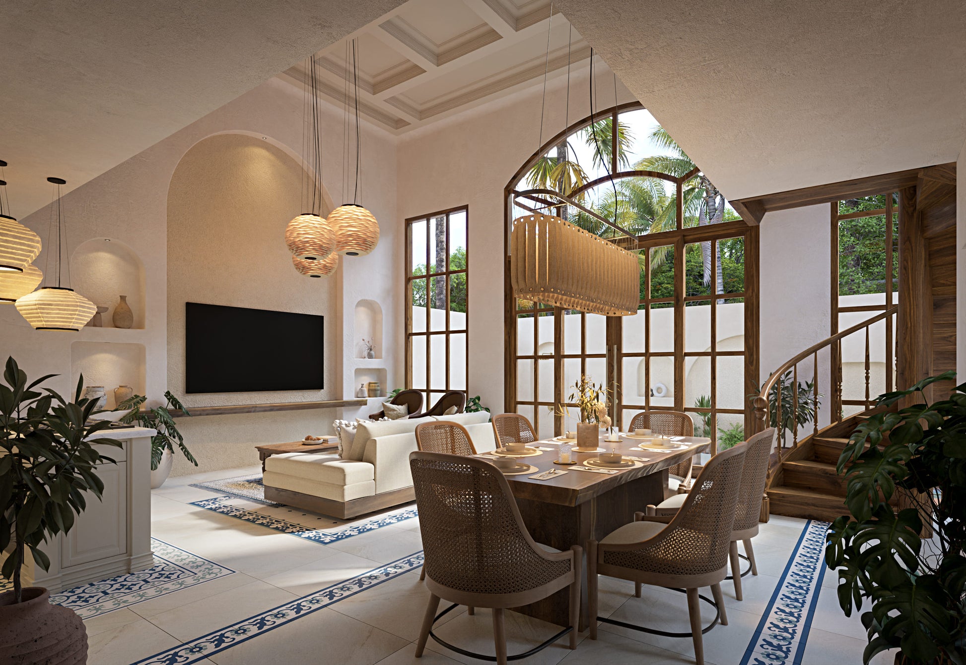 Dvoupodlažní, plně zařízená studio vila s mezaninem, která kombinuje středomořskou eleganci s indonéským koloniálním řemeslem — ideální pro vlastní bydlení i výnosný pronájem v Binginu.